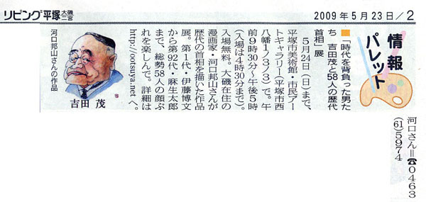 5月23日付け リビング平塚様に「時代を背負った男たち 吉田茂と58人の歴代首相」展の案内が