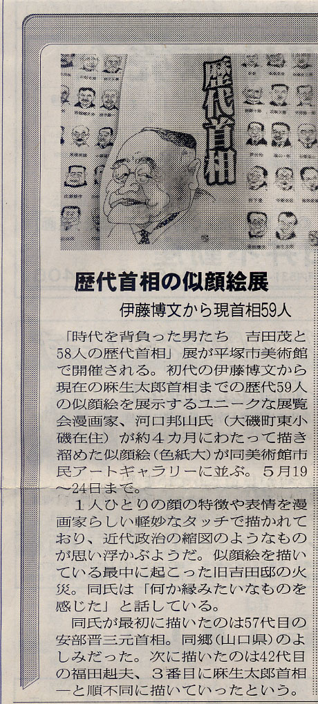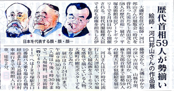 5月16日付け 湘南新聞様に「時代を背負った男たち 吉田茂と58人の歴代首相」展の案内が