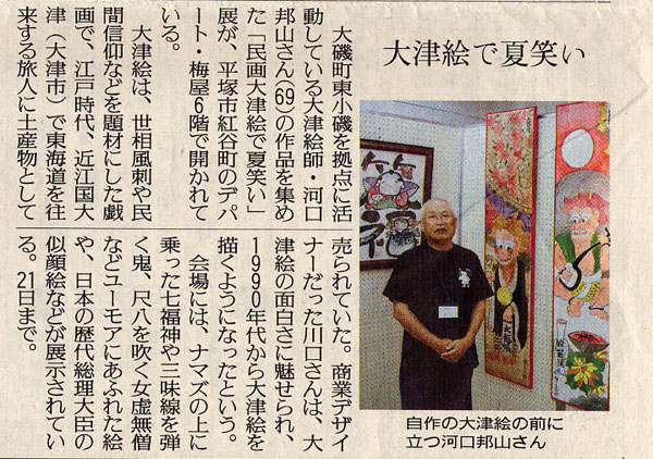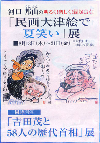 8月15日付け 読売新聞様に「民画大津絵で夏笑い」展の様子が掲載されました。