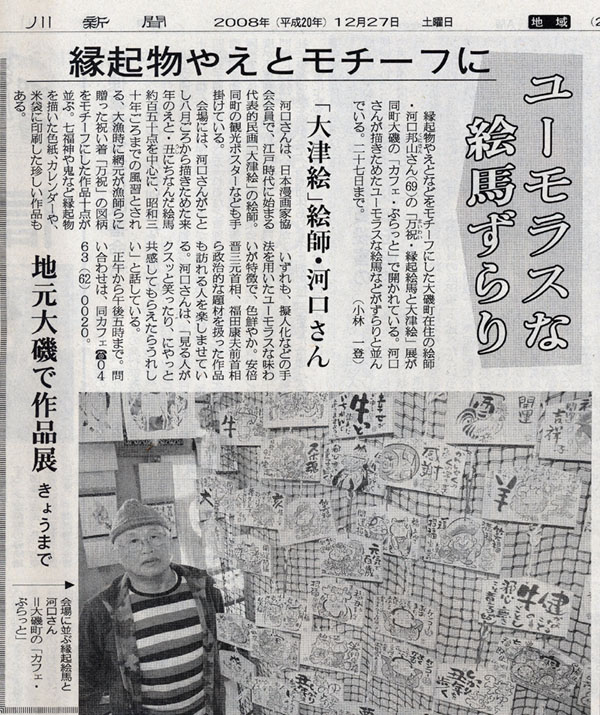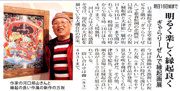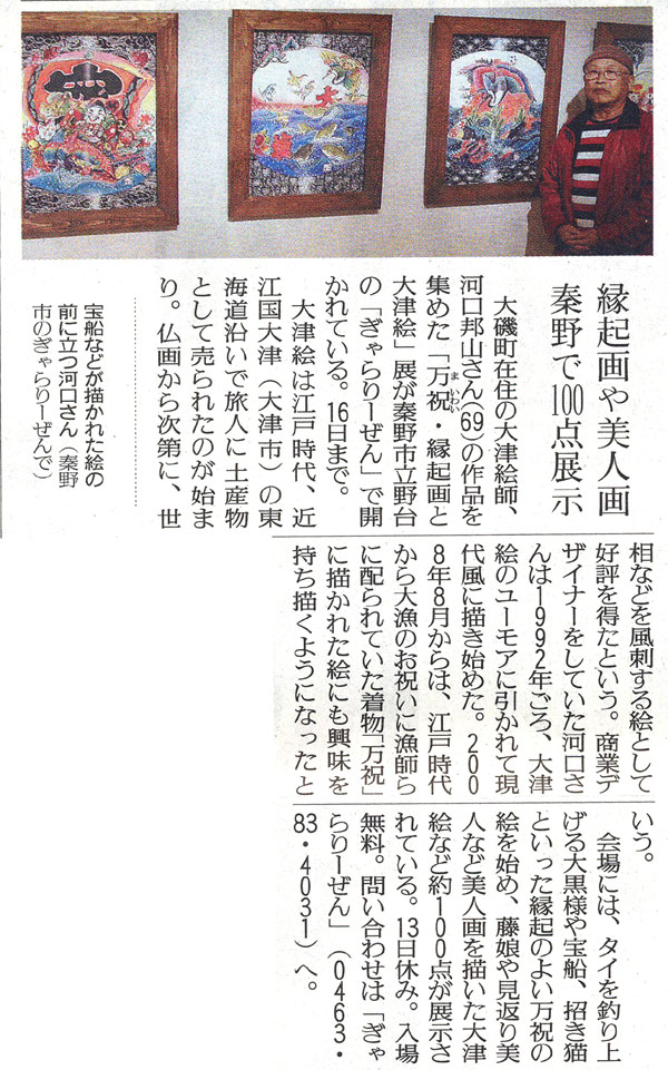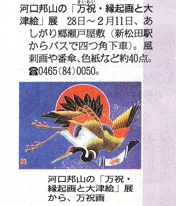1月26日付け 神奈川新聞様に「万祝・縁起画と大津絵」展の案内が掲載されました。